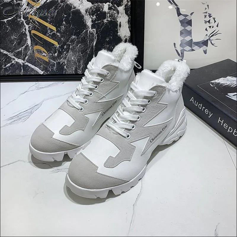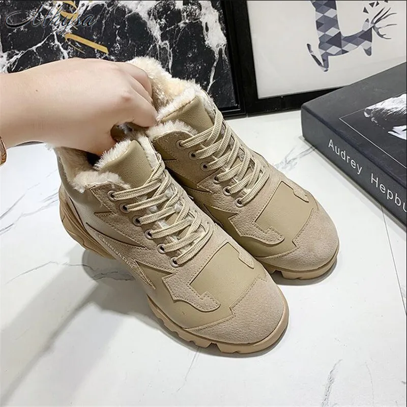 Cheap Mhysa 2019 New Winter Warm Shoes Woman Sneakers Mixed Color Lace Up Winter Velvet Fur Lady Casual S